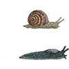 a small soft creature with a hard round shell on its back, that moves very slowly and often eats garden plants. Some types of