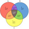 a picture showing sets (= groups of things that have a shared quality) as circles that cross over each other, to show which qualities the different sets have in common