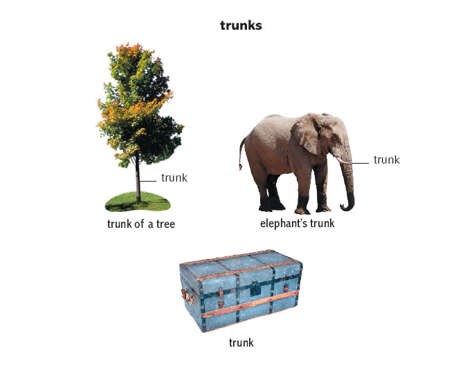 - 1[countable] the thick main stem of a tree, that the branches grow from