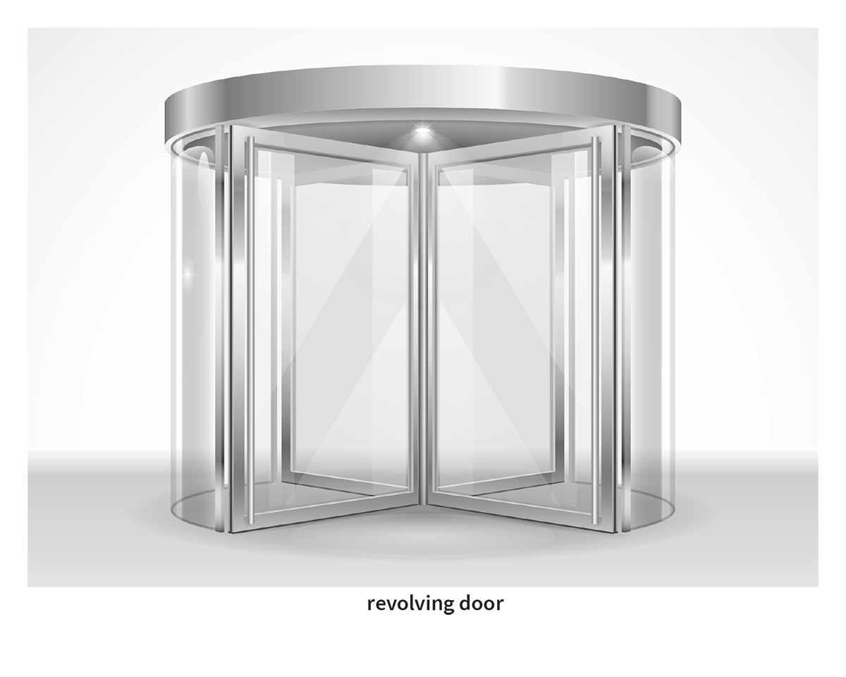 - a type of door in an entrance to a large building that turns around in a circle as people go through it