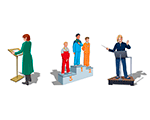 )- a small raised platform that a person stands on to make a speech, conduct music, receive a prize, etc. synonym podium (1)