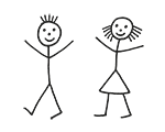 - a picture of a person drawn only with thin lines for the arms and legs, a circle for the head, etc.