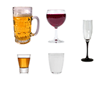 - a glass for drinking out of, with a flat bottom and no handle or stem